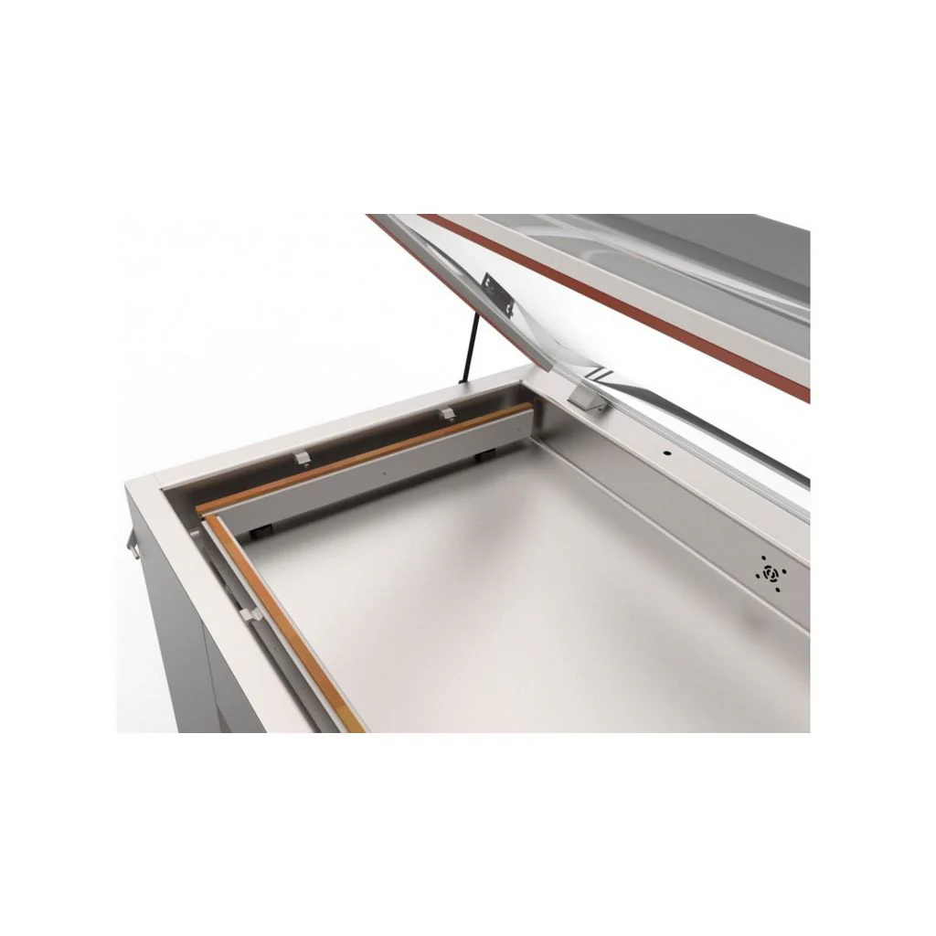 Det specielle design af den trådløse forseglingsbjælke og opbygningen af pakningskammeret, som er lavet af rustfrit stål og har afrundede hjørner, gør rengøring af maskinen meget lettere og hurtigere.